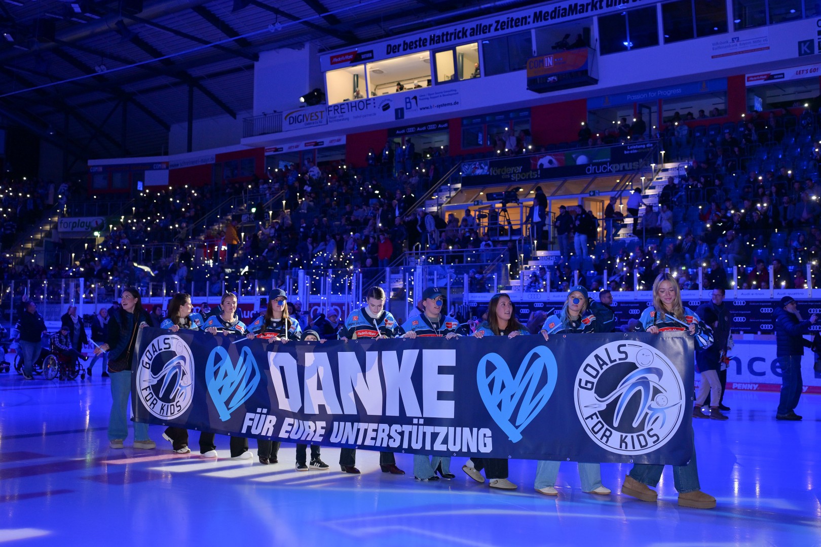 Traditionellen haben wir zum Goals for Kids-Tag eingeladen und den Kindern, die nicht auf der Sonnenseite des Lebens stehen, unvergessliche Momente beschert. Ein emotionaler Höhepunkt war der gemeinsame Einlauf der Kinder direkt vor Spielbeginn. In der abgedunkelten Arena liefen sie Hand in Hand und teilweise im Rollstuhl durch das legendäre Panthermaul. Zu den Klängen vom Weihnachtsklassiker „Wonderful Dreams“ rückten die jungen Menschen sichtbar ins Licht der Gesellschaft. Über 4200 Fans sorgten mit leuchtenden Handylampen für eine ergreifende Stimmung, die den Spitzensport für einen Moment in den Hintergrund rückte. Nach einem weiteren Heimsieg kamen alle Pantherprofis zurück aufs Eis. Es gab Fotos, Autogramme und unzählige strahlende Augen.